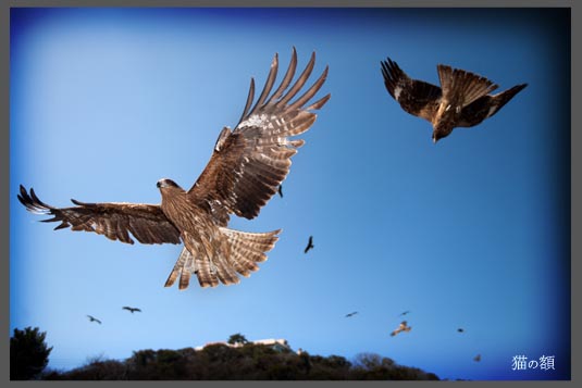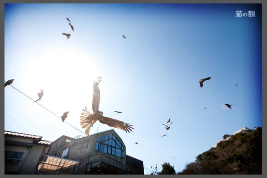 パンを投げると沢山よってきて、後ろから顔の横をかすめて飛んで行ったりするので、