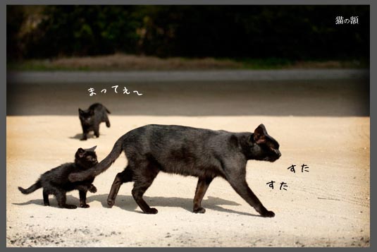 先導して猫が歩いているのに癒されました。