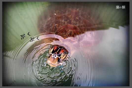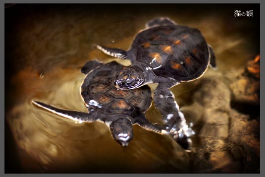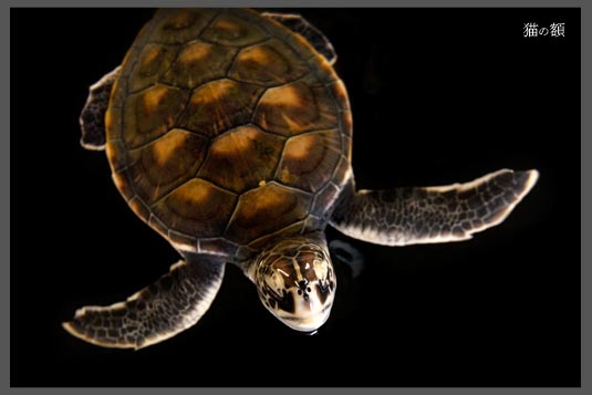 思った以上に、ウミガメの頭はテカテカしてました。