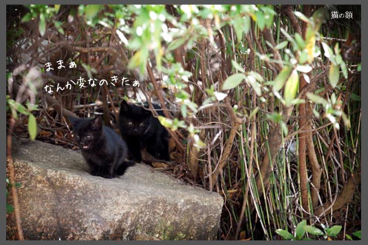 一歩踏み出したら、一目散に石垣の上に逃げられました。