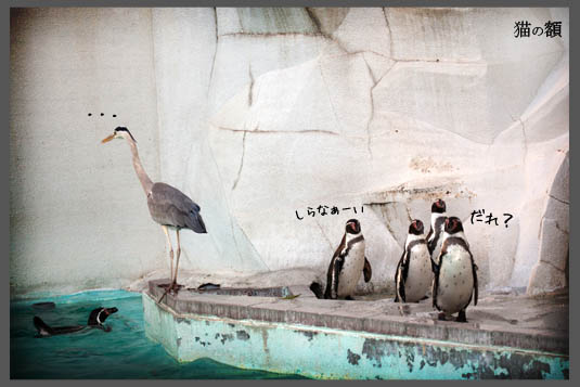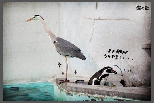 徳山動物園のペンギンがいる場所になぜかアオサギがいました。