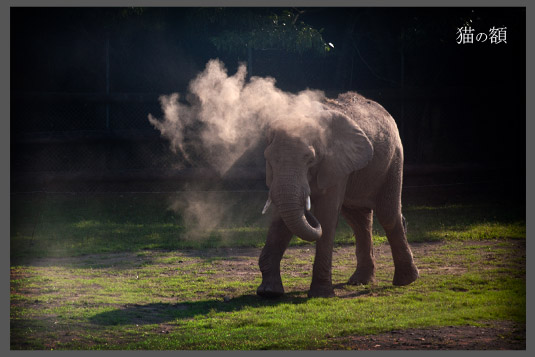 なぜか象は自分に土をかけていました。